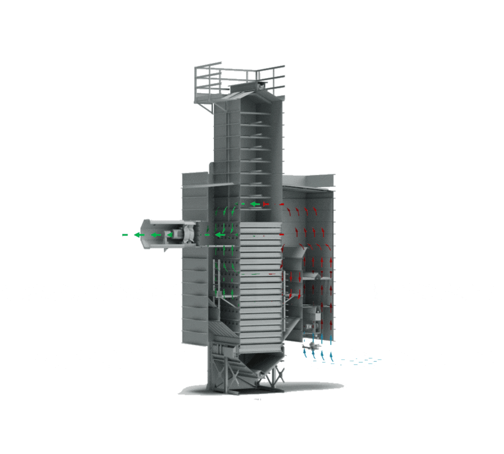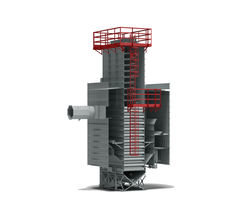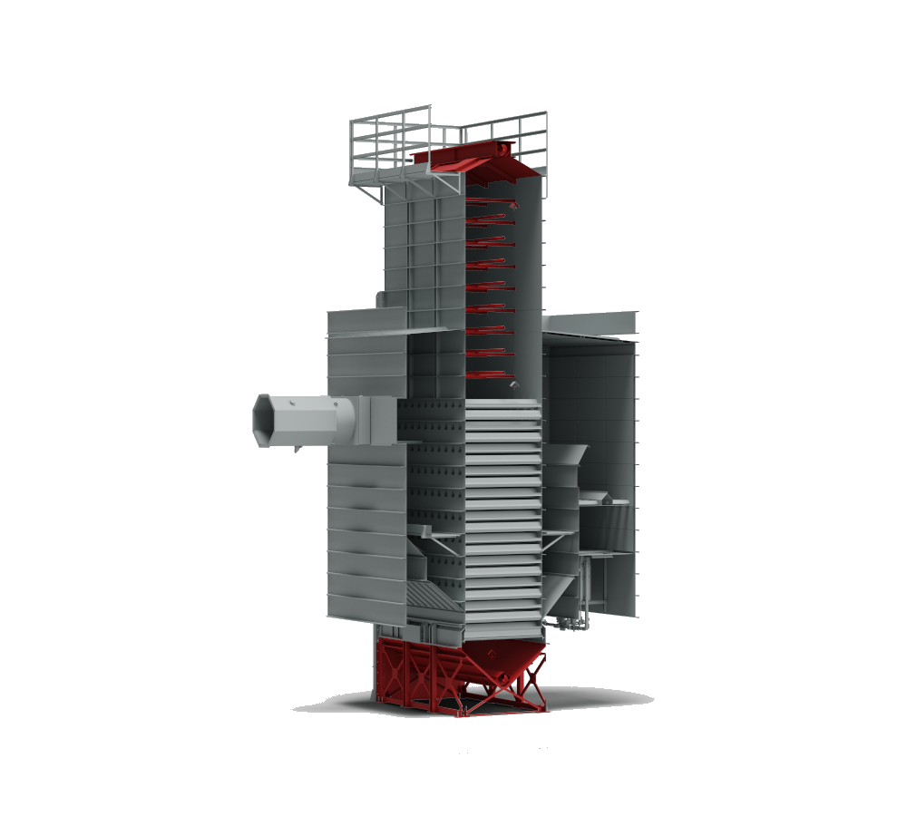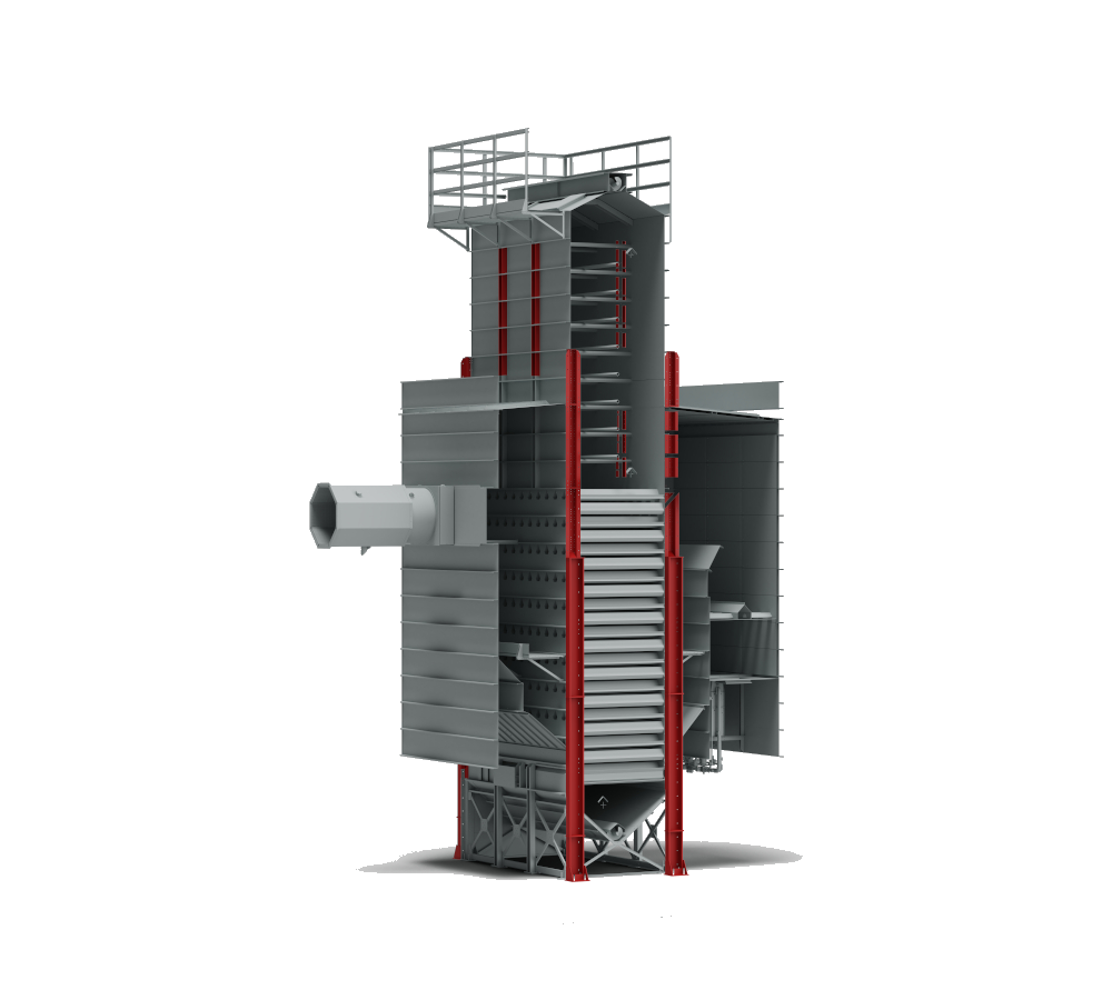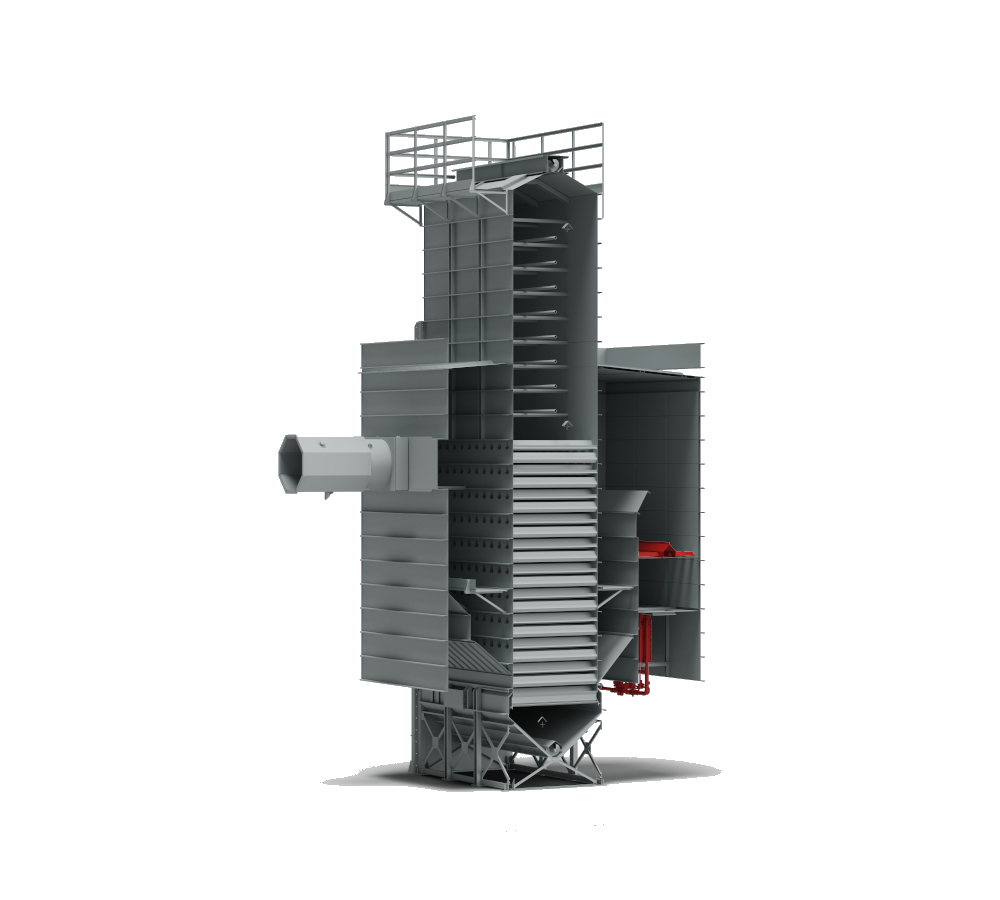 Designed for small quantities or high product turnover, these recirculation dryers offer the option of gentle drying, making them suitable for delicate products such as paddy rice. In AR dryers, once the machine is fully loaded, the product is recirculated inside the dryer by an external bucket elevator. This allows it to pass alternately through the drying zone and the upper tempering hopper.